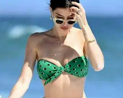 Candids of Nicole Williams looking sexy in a green bikini at the beach in Malibu!