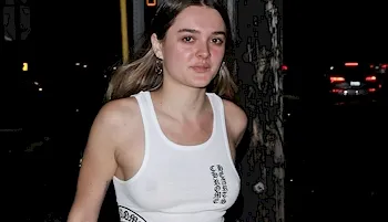 Bianca Censori spotted wearing a top that is so see through that she might as well be topless while out in Los Angeles! Looks like there may be some camel toe as well. View the pictures