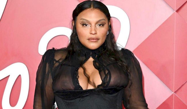 Model Paloma Elsesser wearing a see through top and no bra on the red carpet for The Fashion Awards 2022 in London!