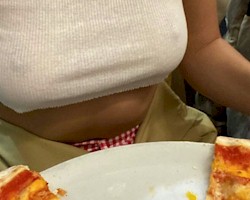 Nice photo shared by Bella Hadid of both her pizza and her nipple pokies!