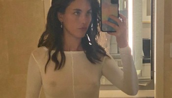 Selfies of a braless Rainey Qualley wearing a very sheer top!