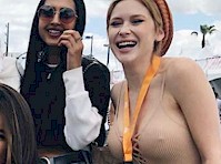 Great shot of Renee Olstead posing in a group of photo! Her pokies definitely stands out..