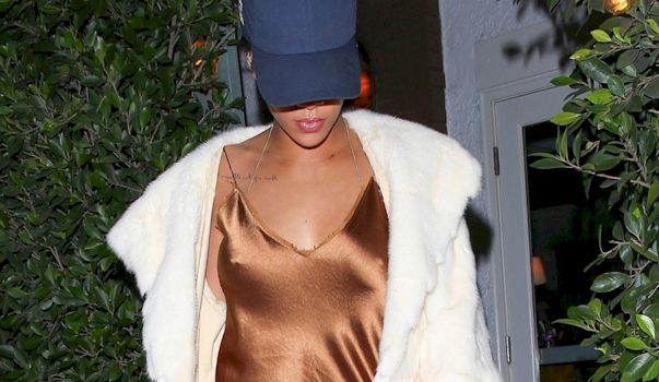Rihanna Braless in a Bronze Dress! November 13, 2015 | Published in Categories Nipple Pokies, Rihanna Candids of a braless Rihanna wearing a slinky dress while leaving a restaurant in Los Angeles! Photos via Imagevenue: