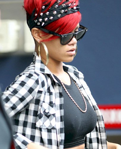 Rihanna was in Vancouver recently to do a concert there but personally, I think she put on a better show by leaving her hotel wearing a top that put her nipples pokies on display! I don’t like the hair though.