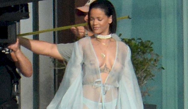 Spy shots of Rihanna looking fantastic in sheer lingerie on the set of her new music video!! Something very hot about a babe in lingerie with a gun. Can’t wait to see the final video, let’s just hope Drake isn’t in it.