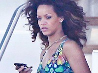 Sexy candids of Rihanna having a drink on a yacht wearing a swimsuit!