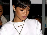 Candids of Rihanna leaving a restaurant, wearing a clear skirt which gives us a great view of her pink panties!
