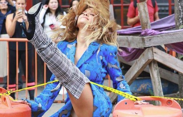 Rita Ora was spotted filming a new music video in NYC yesterday and she was doing some sweet leg kicks!! Would’ve been even sweeter if she wasn’t wearing any panties but these shots are still good.