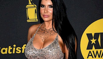 Porn super star Romi Rain showing cleavage in a silver dress on the red carpet for the 2023 XBIZ Awards!