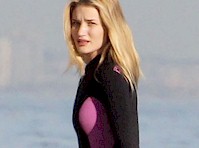 Great candids of Rosie Huntington-Whiteley showing off her great legs by wearing bikini bottoms in Malibu!