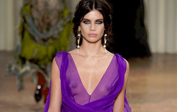 Here’s Sara Sampaio looking hot in a see through dress at the Alberta Ferretti show at Milan Fashion Week! Great look at her boobs and in case you’re wondering, the blonde is Stella Maxwell! You get a slight see through view of her boobs in pic #3 as well.