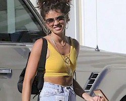 Candids of Sarah Hyland showing plenty of leg and midriff while getting out of her car in LA!
