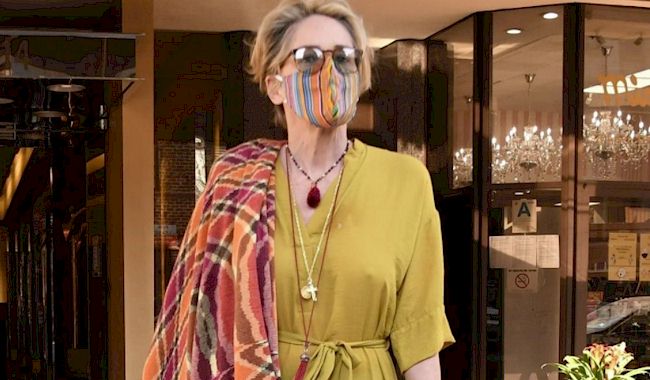 Sharon Stone Nipple Pokies in a Yellow Dress! October 15, 2020 | Published in Categories Nipple Pokies, Sharon Stone Candids of Sharon Stone looking nice in a yellow dress and showing pokies while leaving a spa in Beverly Hills!