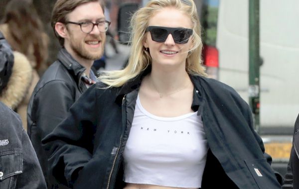 Candids of a braless Sophie Turner with lovely pokies on display while out with Joe Jonas in NYC!