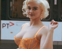 Photos of sexy model Stefania Ferrario wearing lingerie while out protesting for animal rights in Melbourne, Australia! You can see her bush.