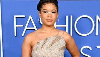 Storm Reid showing off her legs when walking the red carpet in a tight silver dress for the 2023 Fashion Trust U.S. Awards!