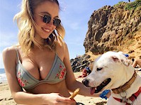 A couple of great bikini shots of Sydney Sweeney at the beach with her dog!