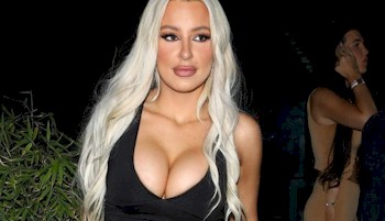 Alexis Ren looking fantastic in a body hugging and semi-sheer dress while attending the Elton John AIDS Foundation Academy Award Viewing Party in Los Angeles! View the pictures