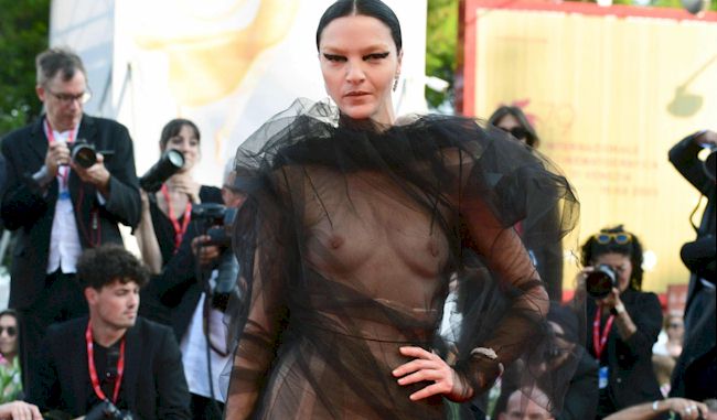 Italian model and actress Mariacarla Boscono wearing a very sheer and revealing outfit while arriving to the opening ceremony of the 79th Venice International Film Festival! View the pictures