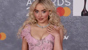 Candid pictures of Sabrina Carpenter showing nipple pokies in a pink sweater as she steps out of a car and arrives to Late Night With Seth Meyers!