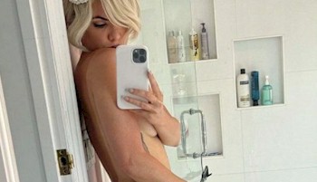 Selfie of model Kelly Gale posing topless in an arm bra!