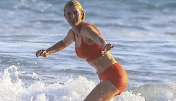 Candid pictures or Ivanka Trump wearing an orange sports bikini and a swimsuit while surfing at a beach in Costa Rica!