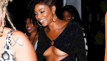 Candid pictures of Tiffany Haddish showing underwear in a see through dress while she exits the Christian Siriano fashion show in New York! Kind of looks like we see her bush!