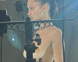 Behind the scenes clip and pictures of a topless (but in pasties) Bella Hadid getting scanned for Thierry Mugler’s upcoming Spring / Summer collection. Bella was turned into a 3d digital version of herself.