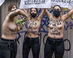 Topless protest group FEMEN appeared in Catalonia during elections to protest something.