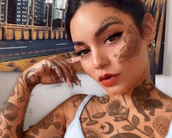 Vanessa Hudgens showed what she would look like if she was covered in tattoos and also showed off her nipple pokies!