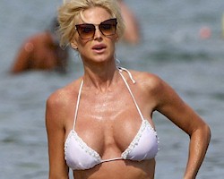 Bikini candids of model and former Playmate Victoria Silvstedt looking good at a beach in St Tropez!