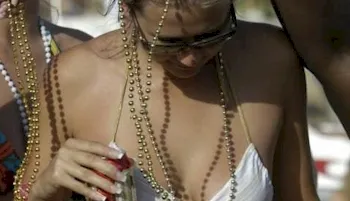 Candid shot of a girl wearing a white bikini at the beach and with a lovely camel toe on display!