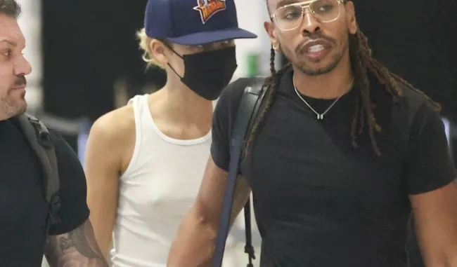 Candid photos of a braless Zendaya showing nipple pokies in a white tank top while catching a departing flight at Sydney International Airport! View the pictures