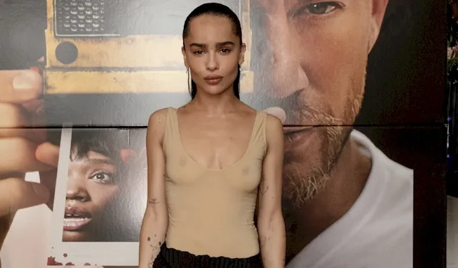 Zoe Kravitz showing off her boobs and nipples while wearing a sheer top at a special screening of Blink Twice in New York!
